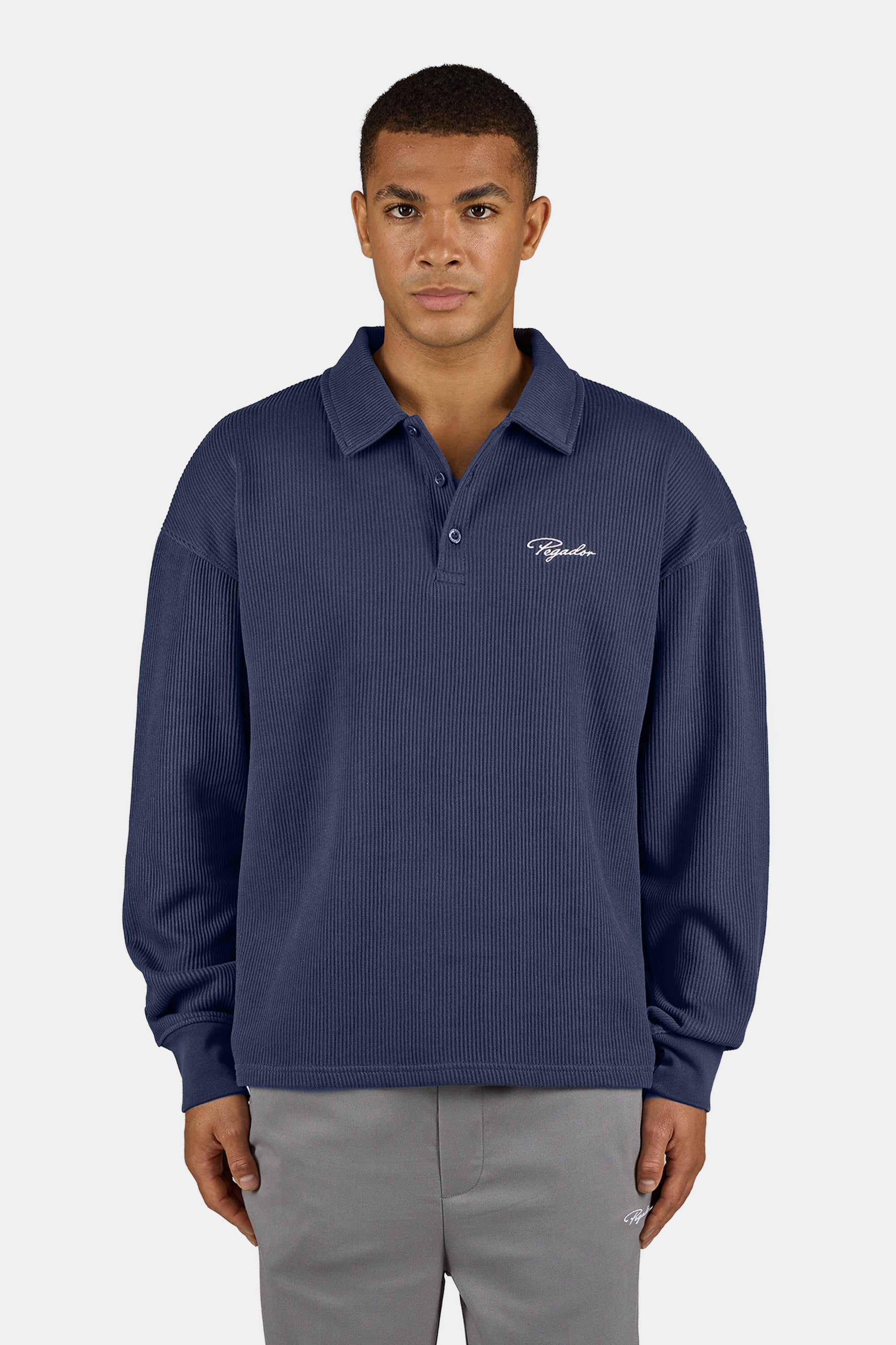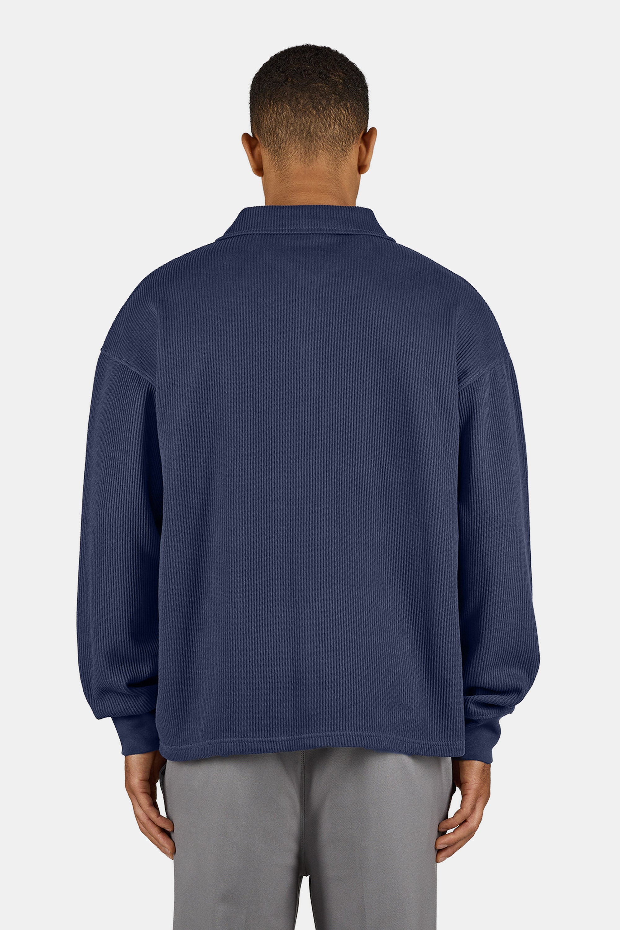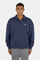 Signar Rib Polo Longsleeve Washed Indigo Navy