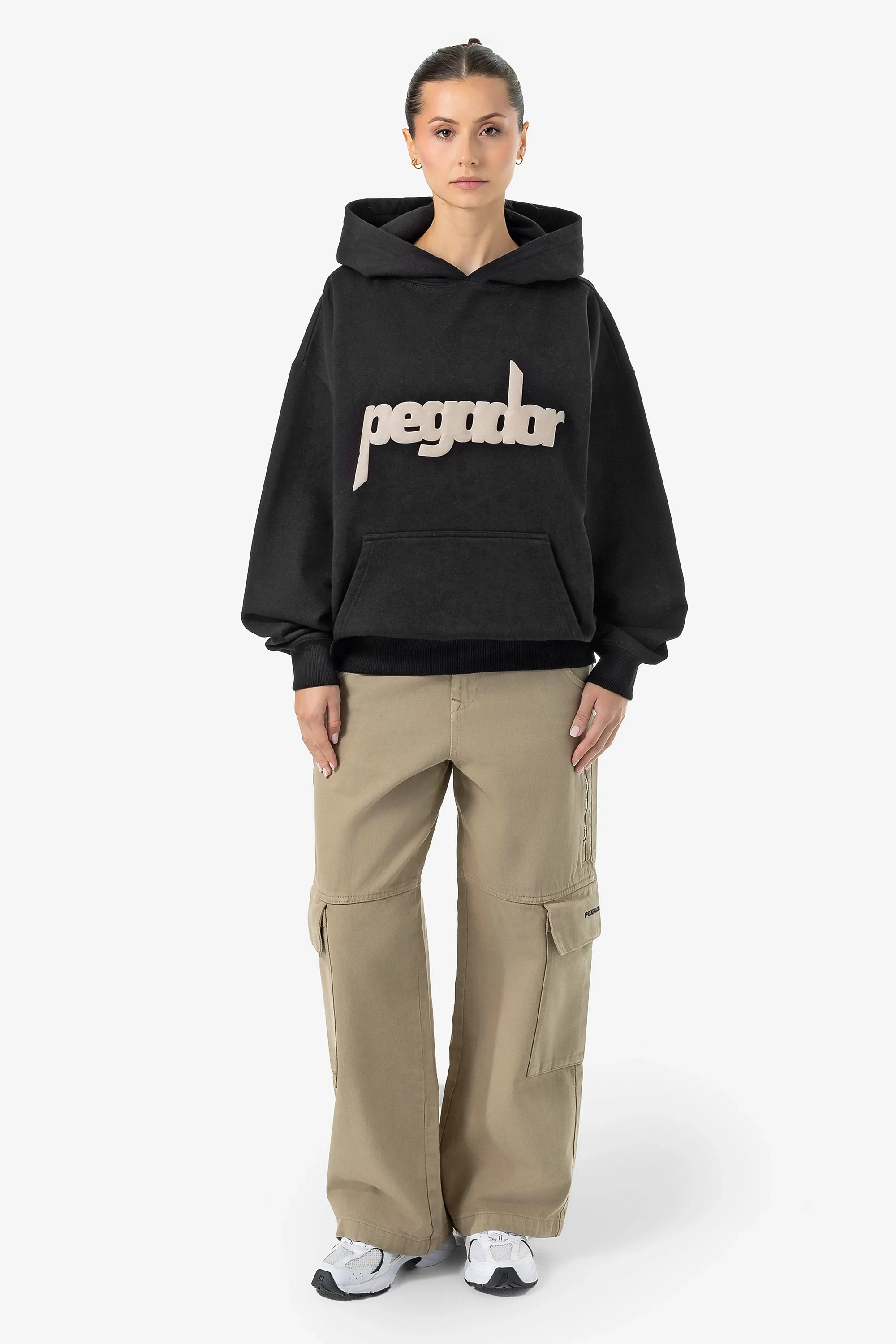 • washed light beige logo puff print to the front