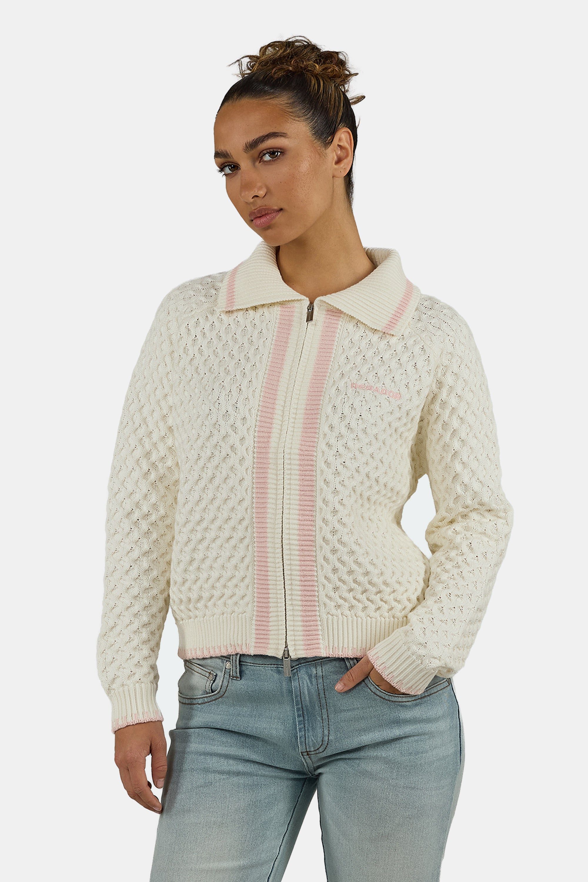 - warm white knit zip jacket