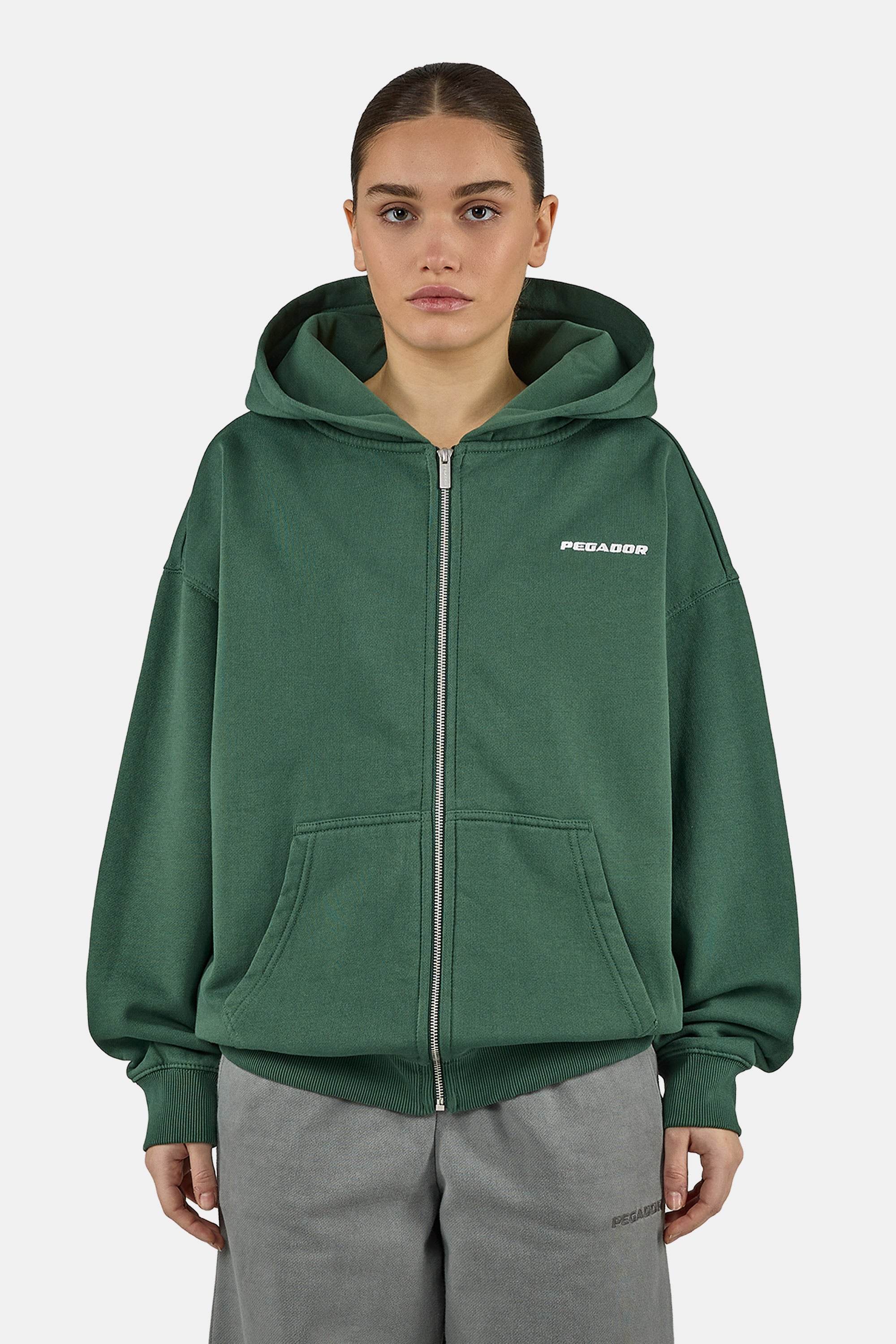 - washed solid green sweat jacket