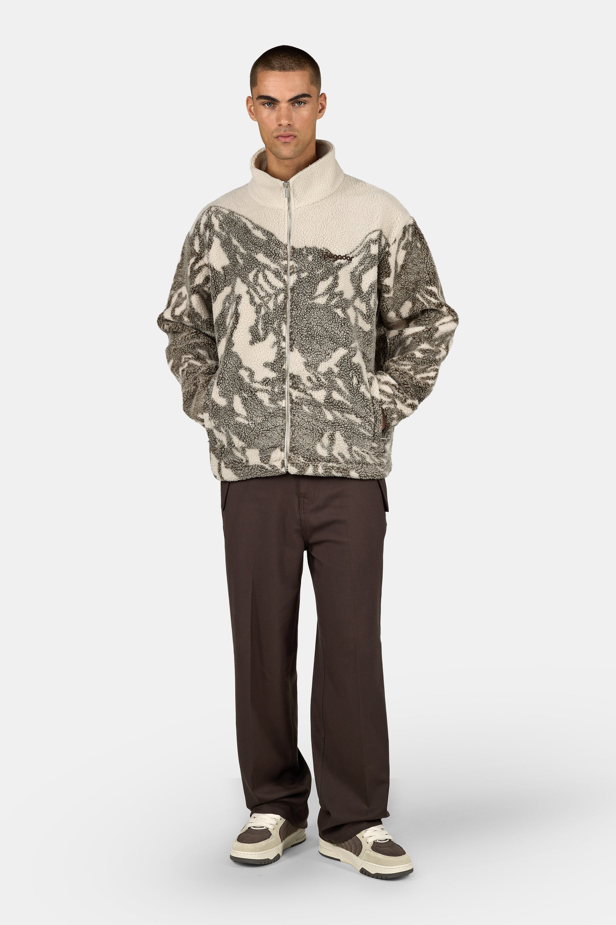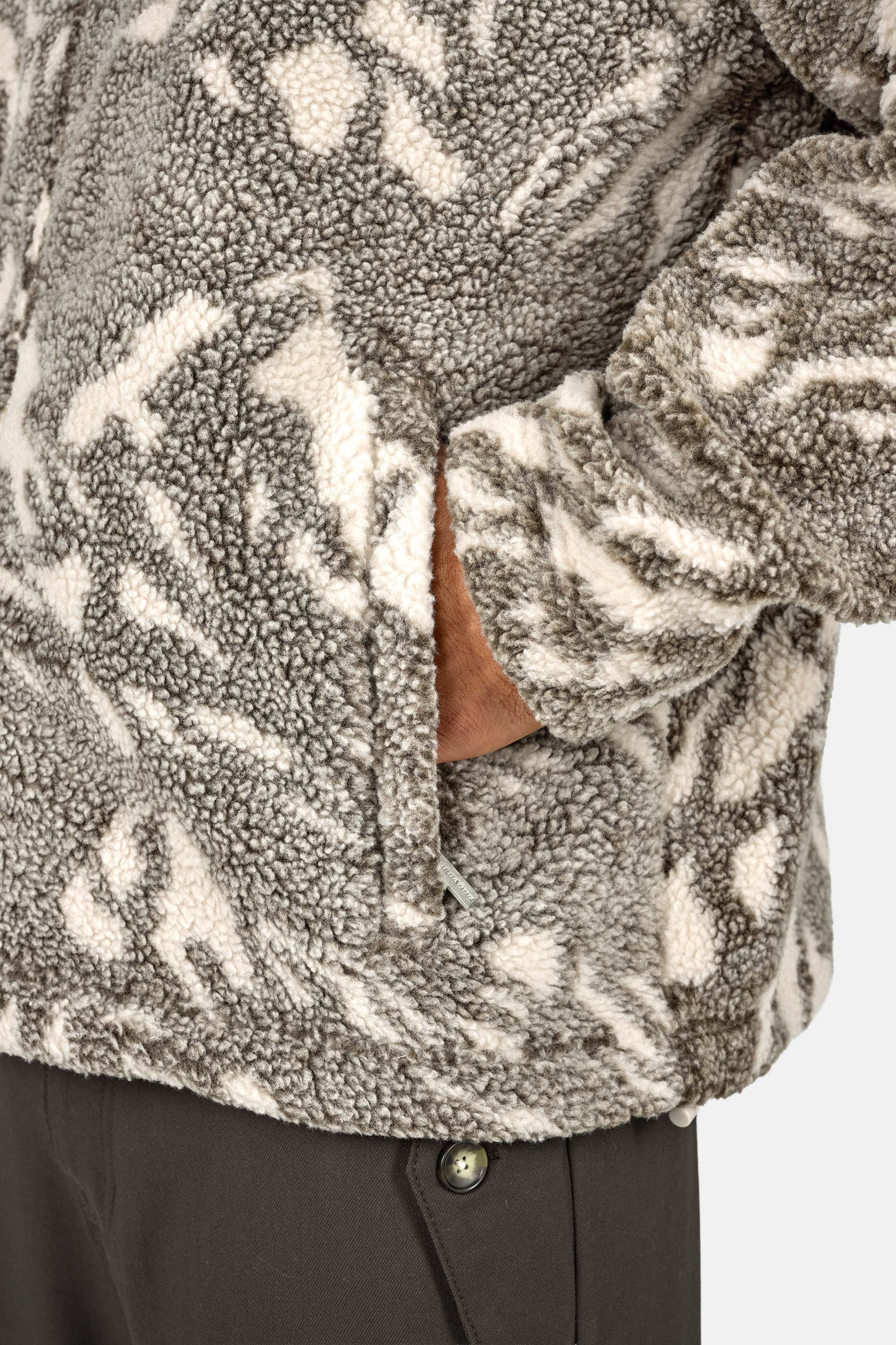 - cozy beige fleece jacket