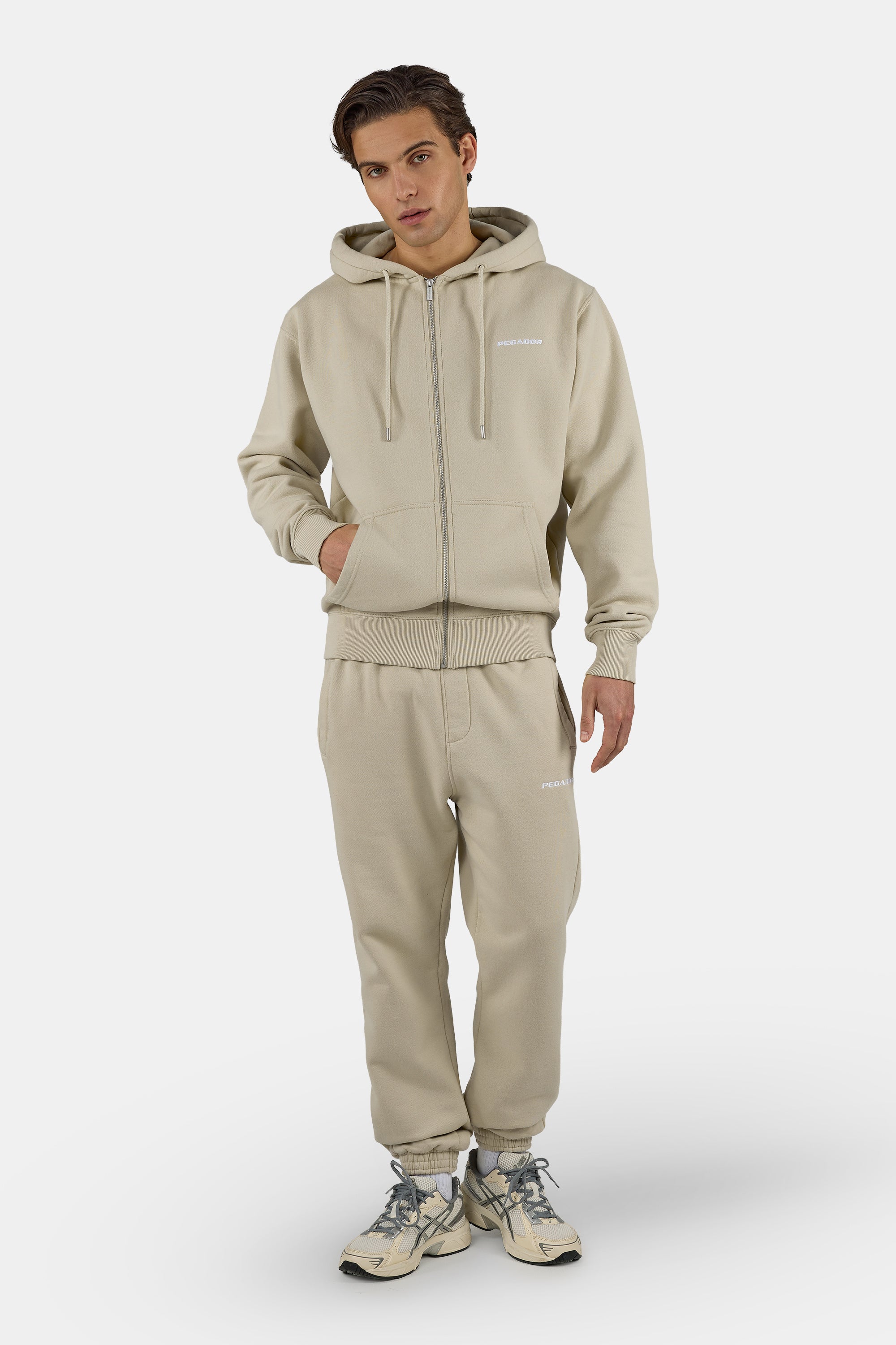 Logo Regular Sweat Jacket Washed Khaki Beige