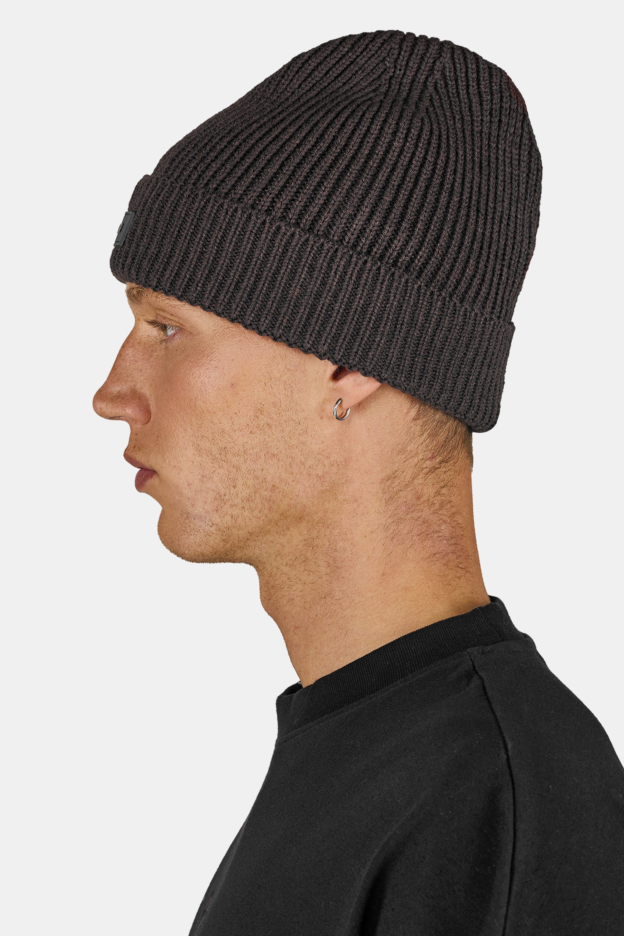 - dark brown rubber beanie