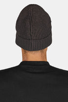 Logo Rubber Beanie Heavy Knit Dark Brown Black