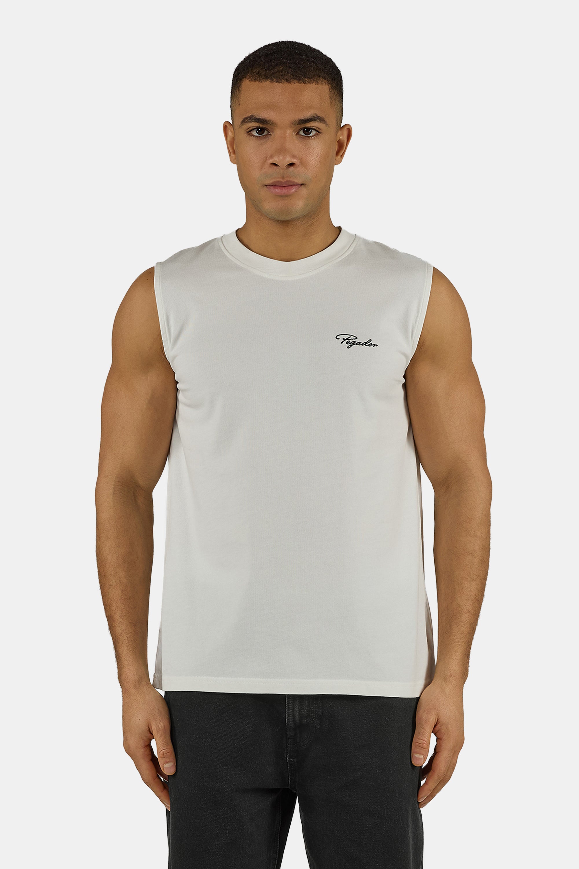 - washed warm white sleeveless tee