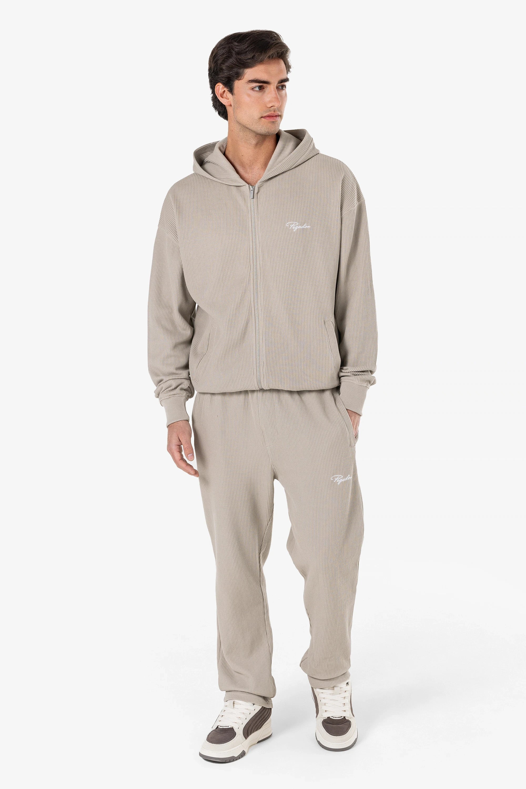 Signar Wide Rib Pants Washed Dark Stone White