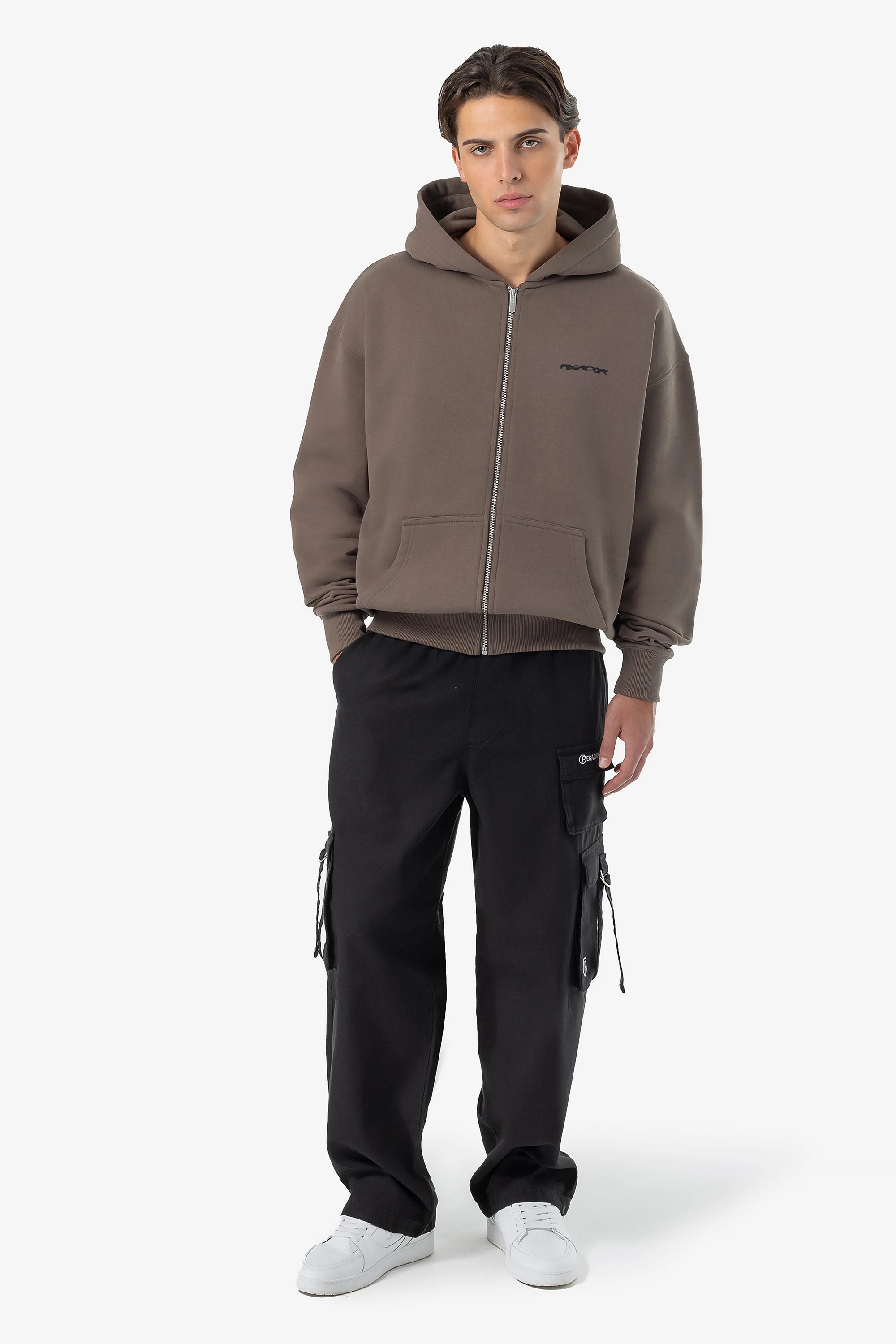 - white "p" embroidery to the cargo pocket