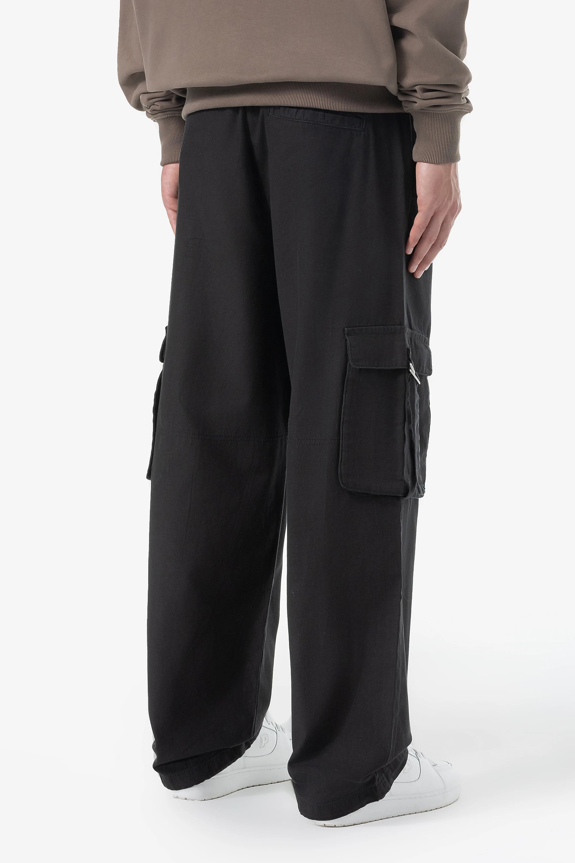 - black cargo parachute pants