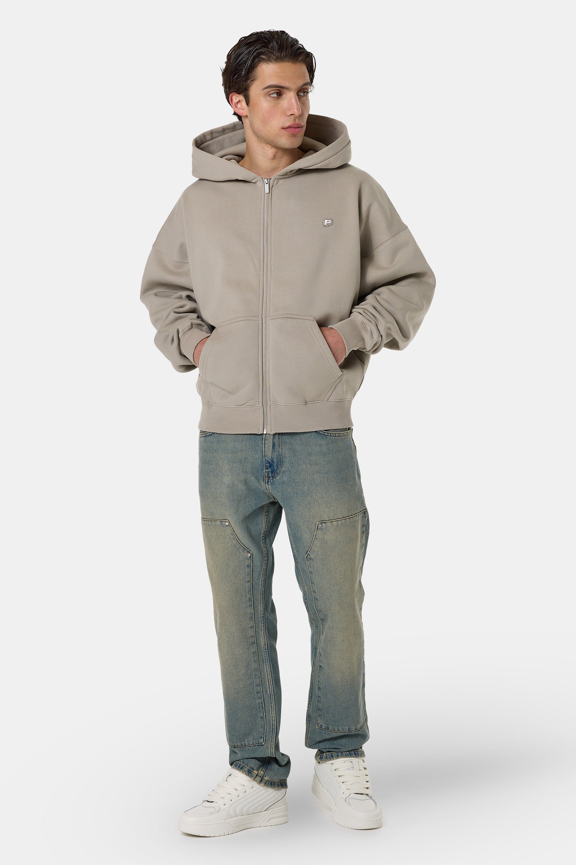 - silver metal logo patch to the right pocket