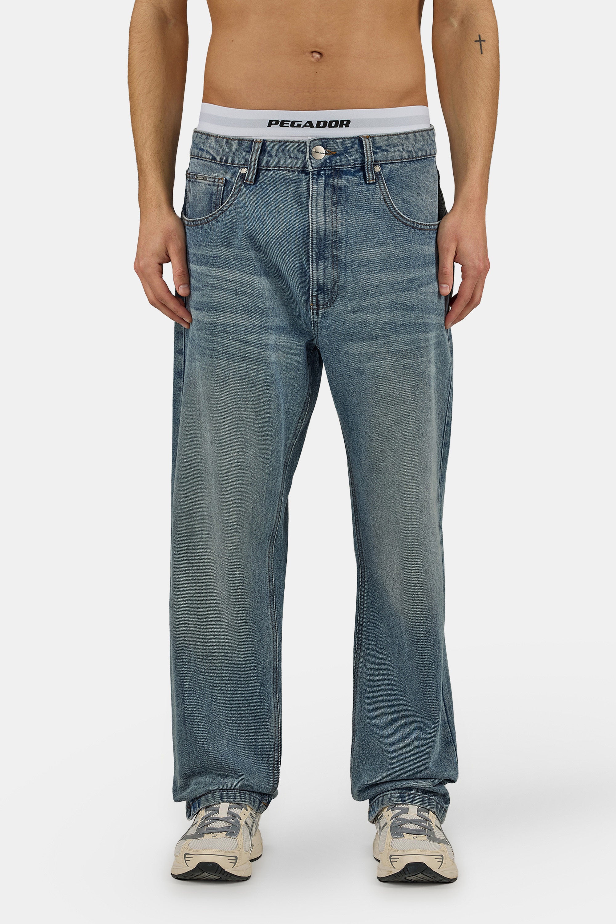 - silber-farbiger Metall-Logo-Patch auf der rechten Hosentasche