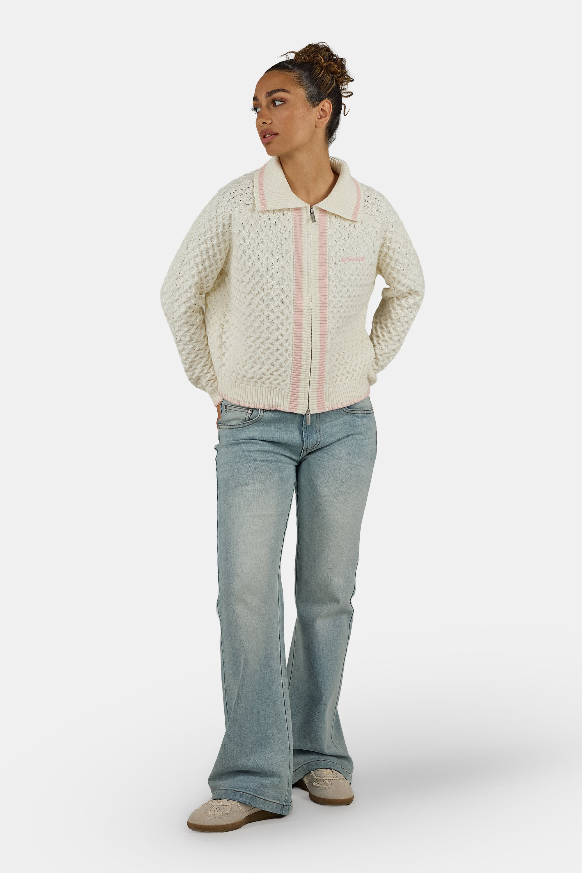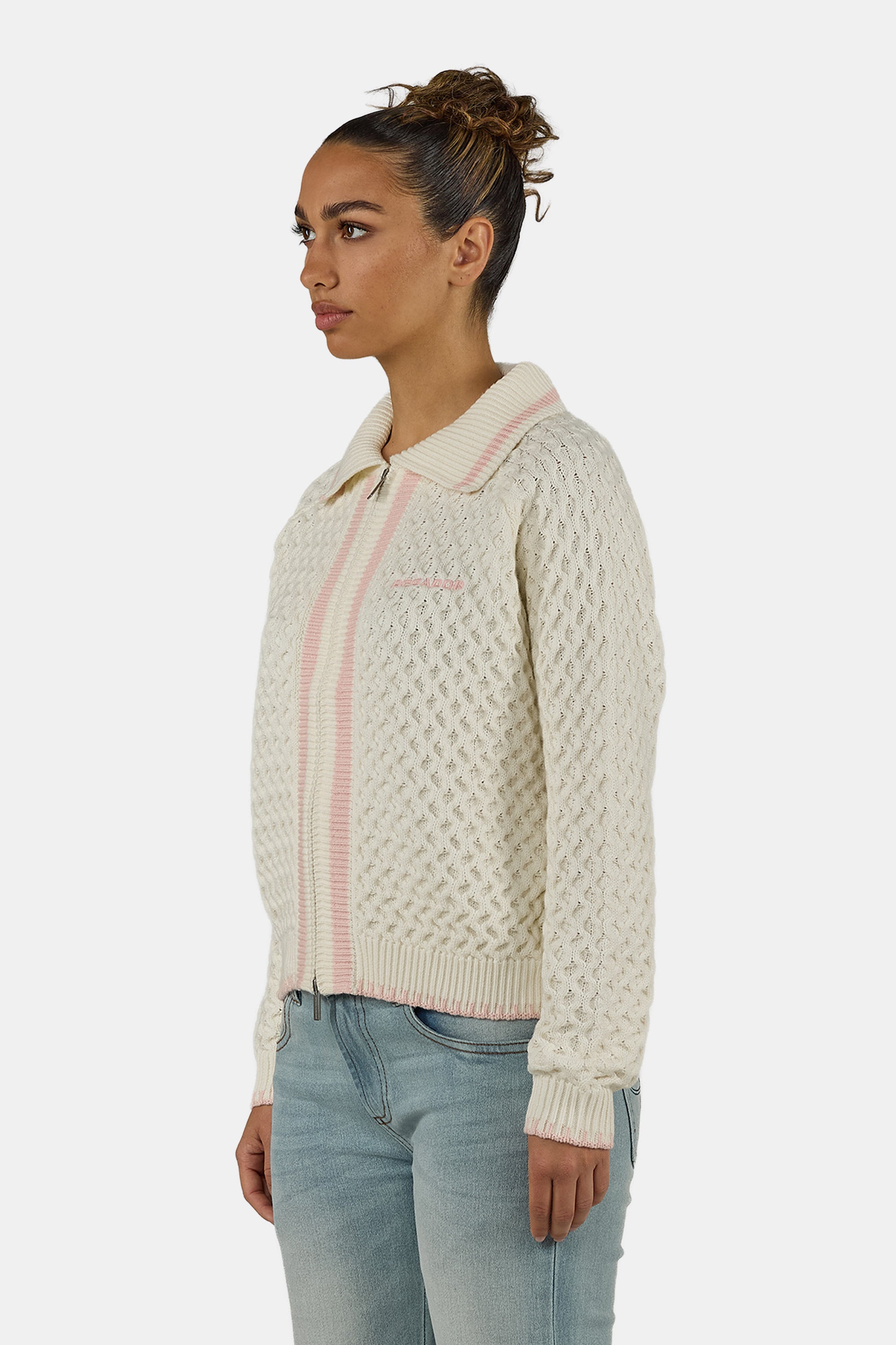 - warm weiße Strick Zip Jacke