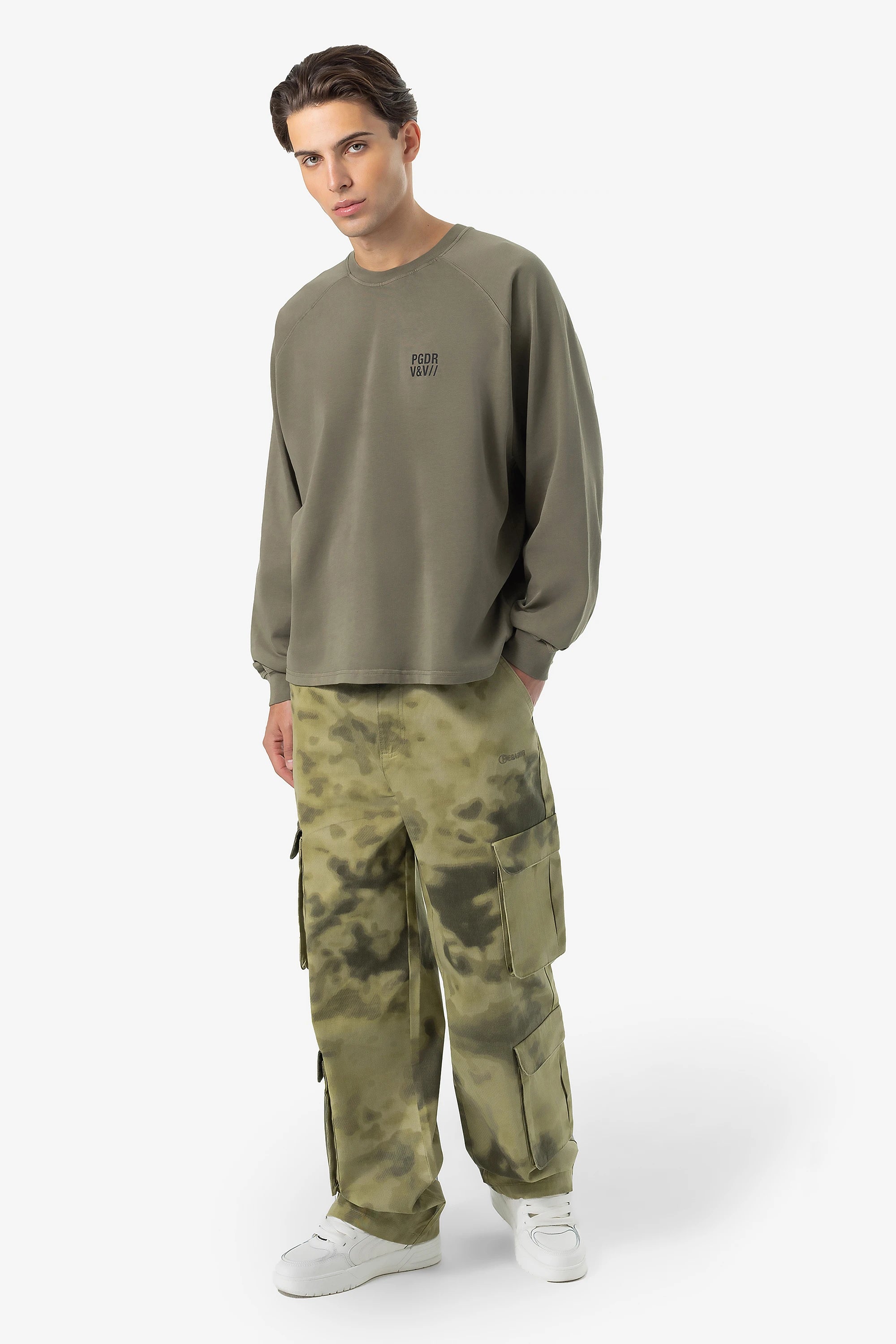 - schwarzer "pgdr" cracked Print auf der Vorder- und Rückseite