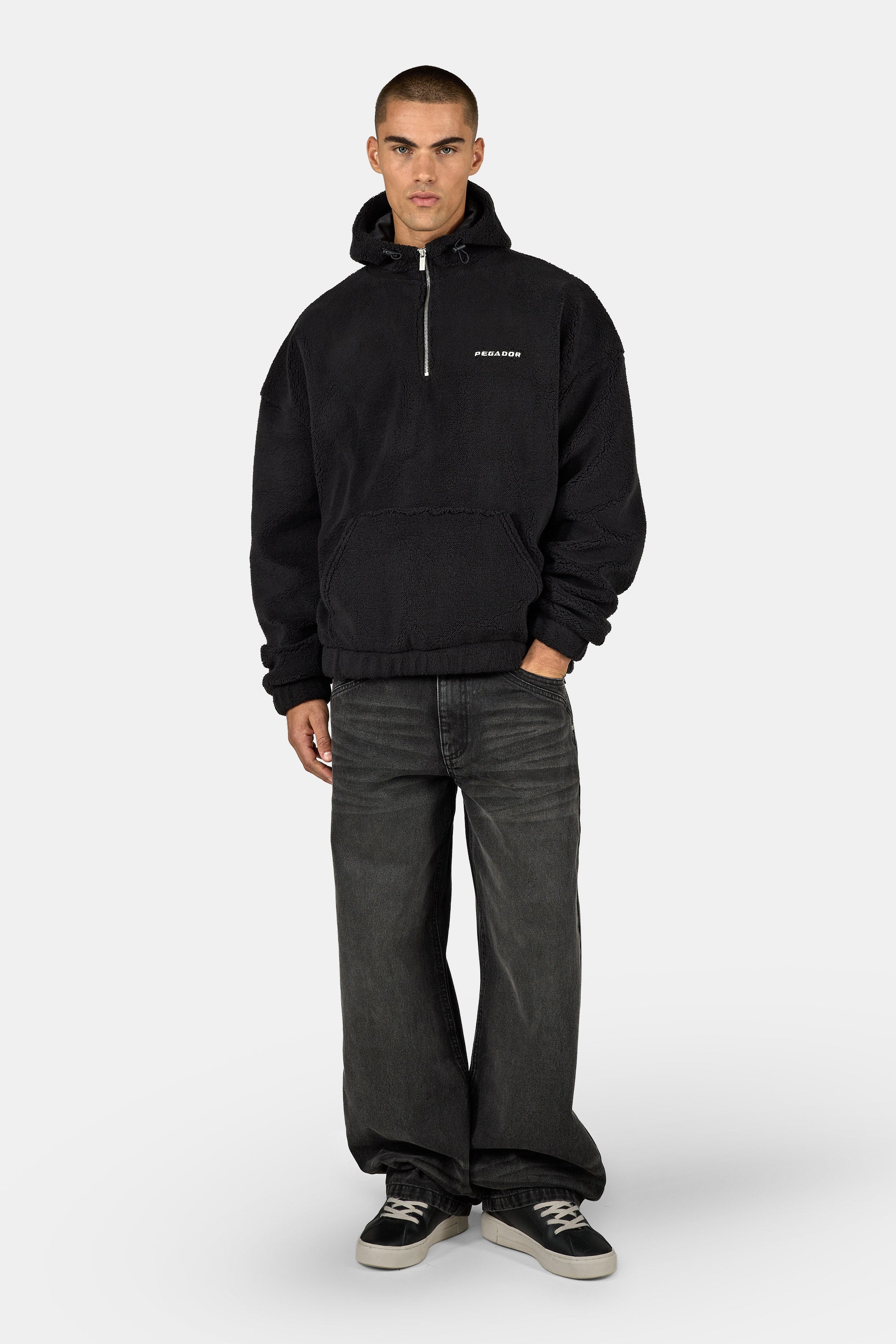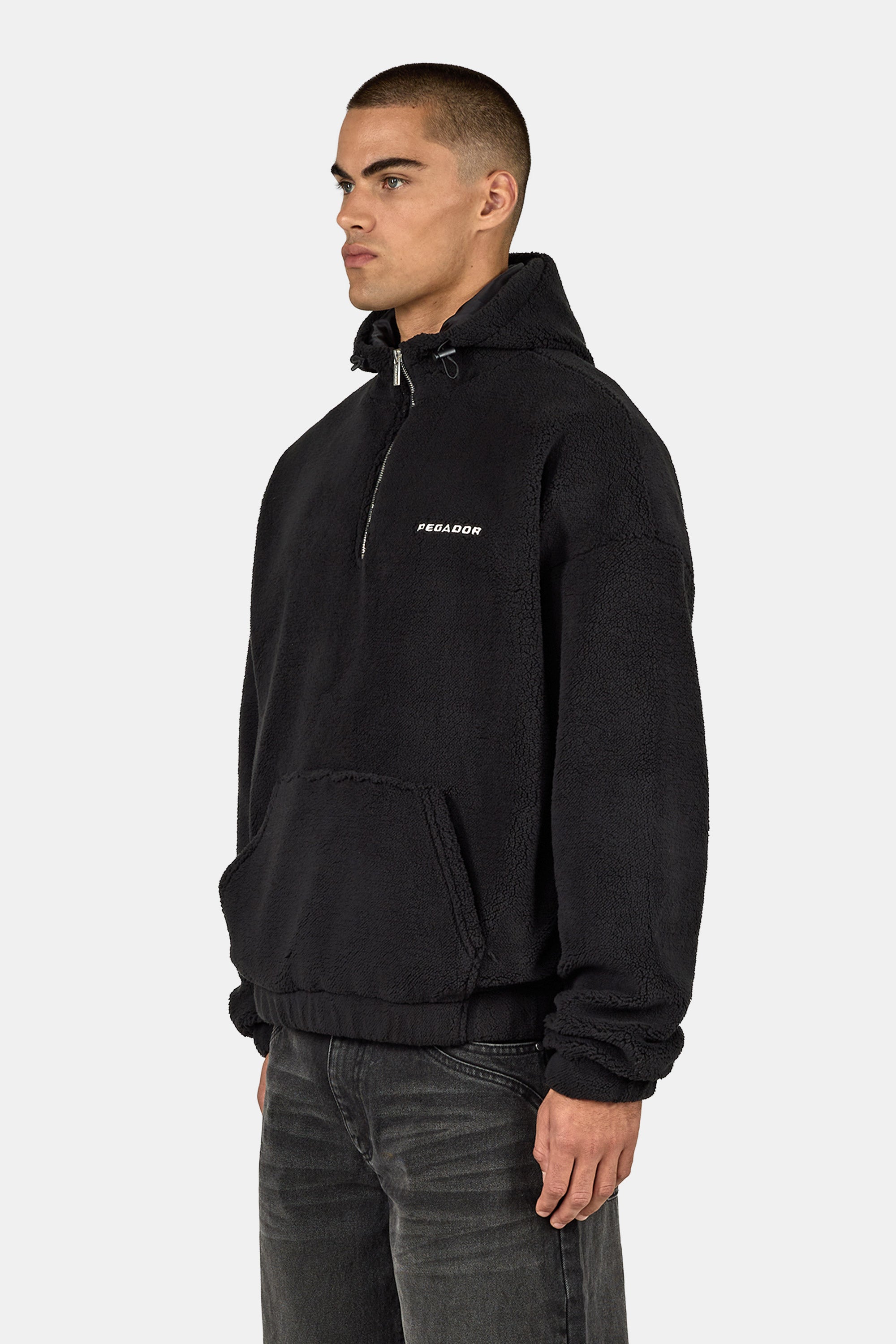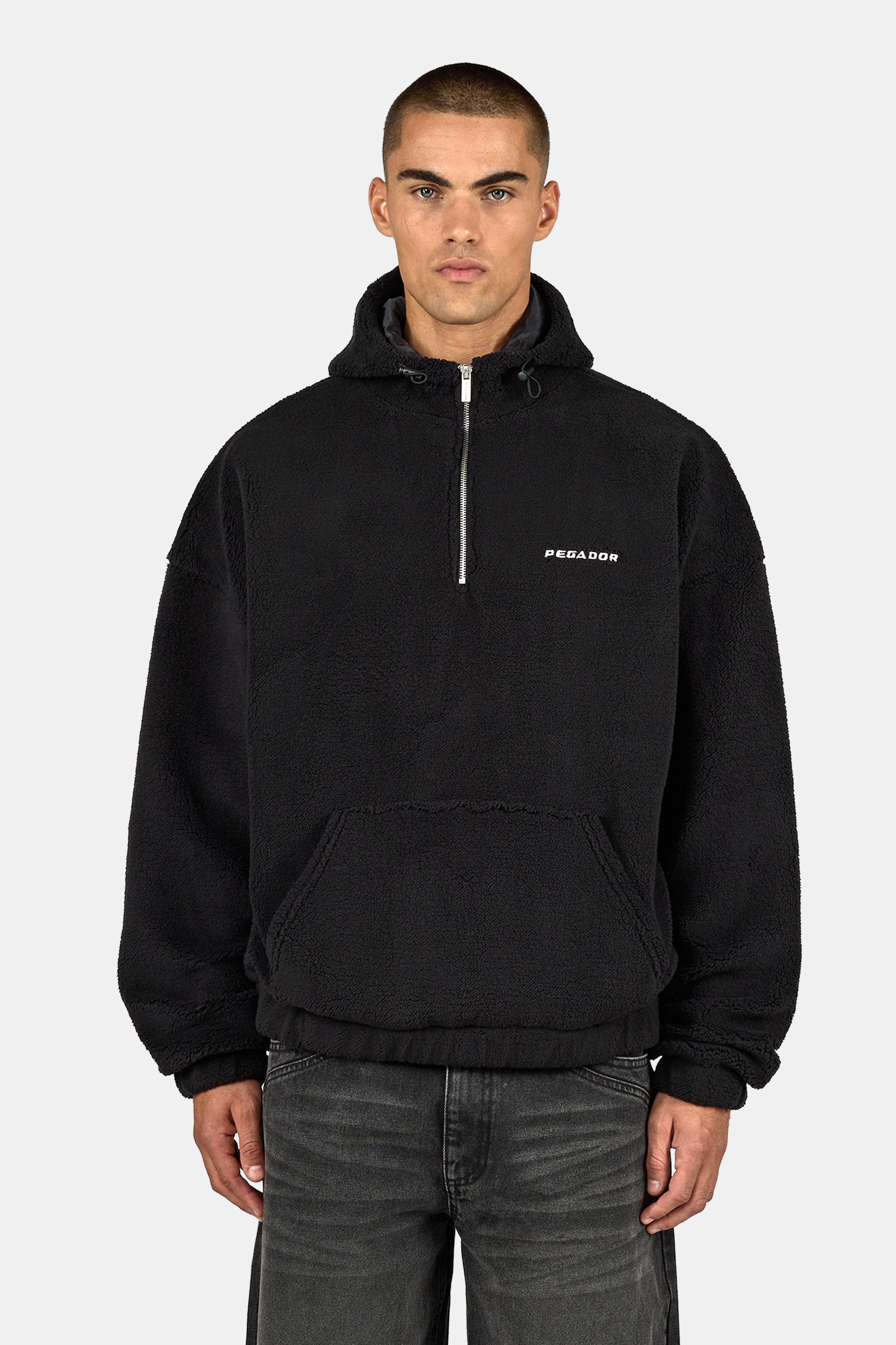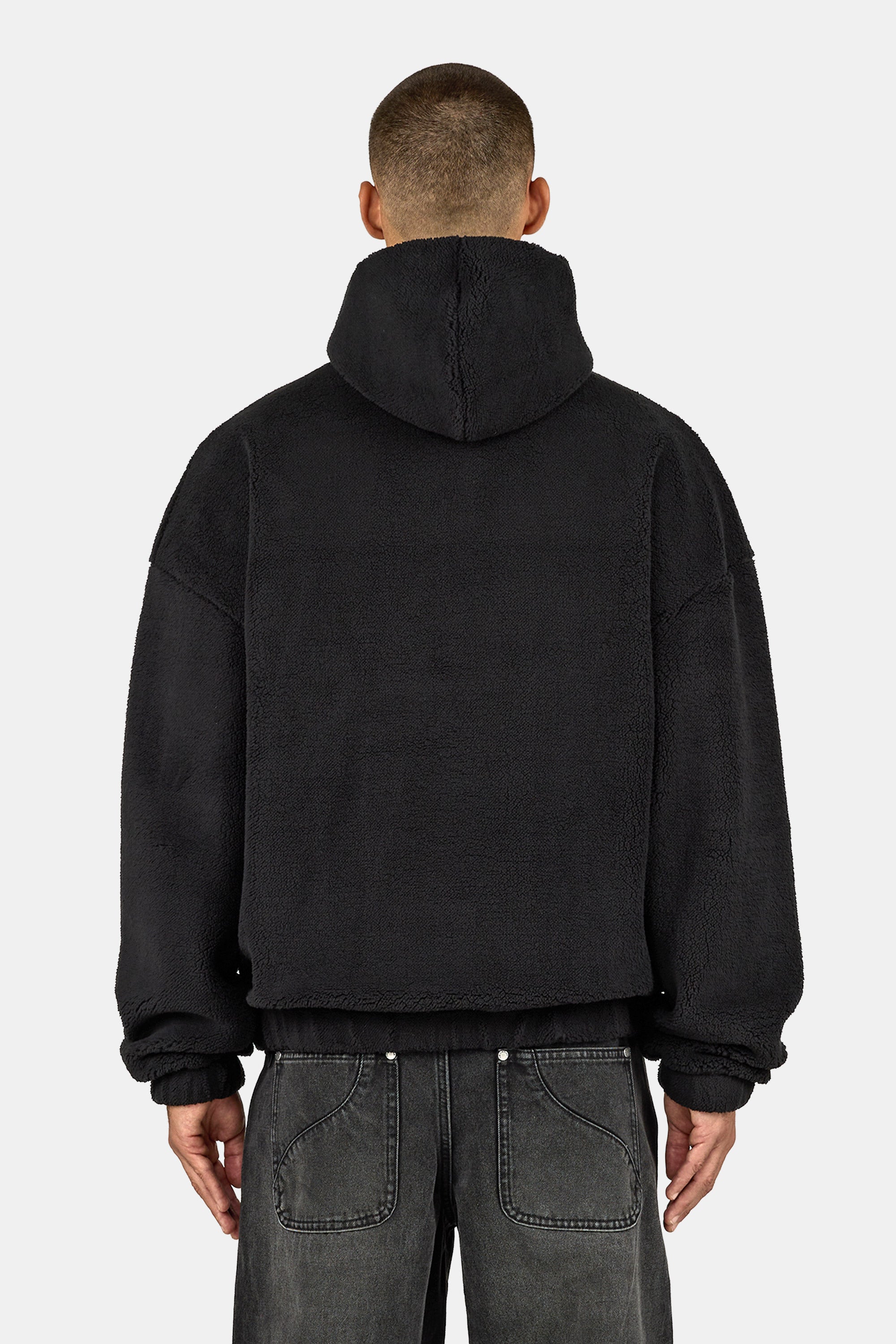 - schwarzer Teddy Half Zip Hoodie